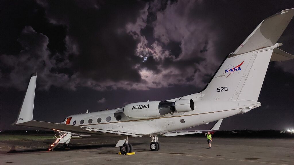 The NASA G-III aircraft at night. (Credit: Diko Hemminga / KNMI).