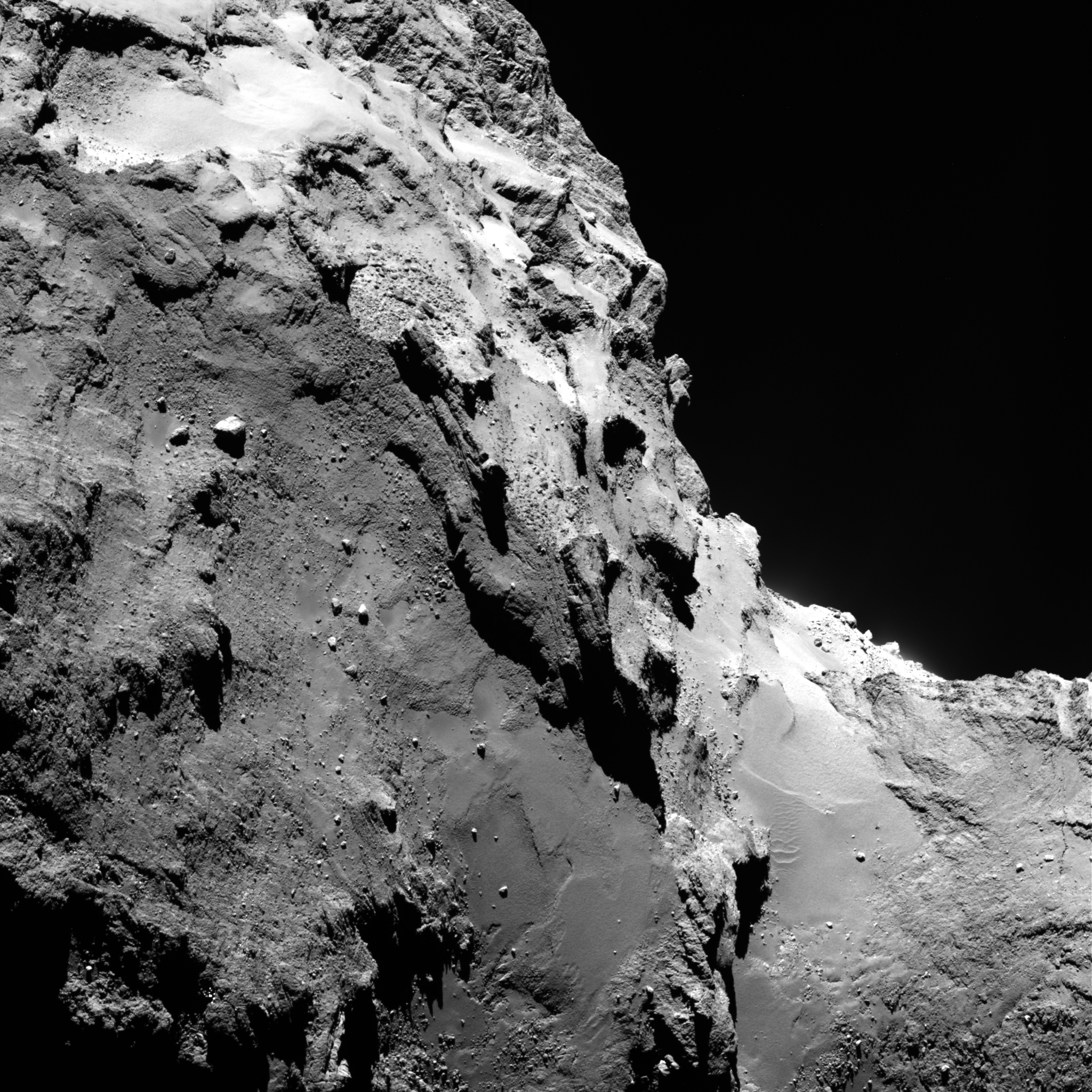 They show the astonishing detail of the comet surface at close range, including images used to help characterise Philae’s landing site at Agilkia.